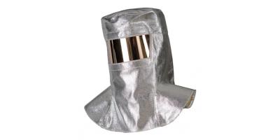 Aluminizirana kapuljača s prozirnim vizirom za zaštitu lica i ramena.